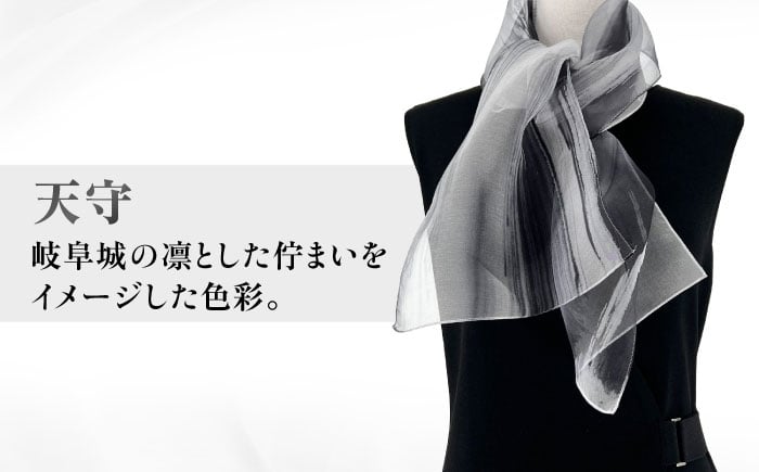 スカーフ 美濃友禅 シルク NAOE KAWAMURA ー天守ー ストール ショール ファッション 雑貨 小物 伝統工芸 アート 芸術作品 インテリア 岐阜県 おすすめ 人気 オーガンジー 染色 グラデーション おしゃれ かわいい 上品 高級感 エレガント フォーマル カジュアル 普段使い サステナブル ハンドメイド ギフト プレゼント 岐阜市 / 河村尚江デザイン事務所 [ANDE005]