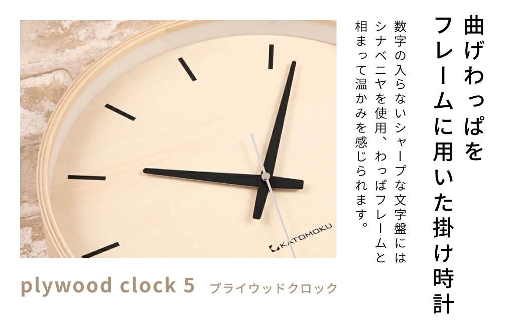 - KATOMOKU plywood clock 5 電波時計《選べるカラー》ナチュラル ブラック km-50RC 連続秒針 木製 掛け時計 インテリア 寝具 収納 雑貨 おしゃれ シンプル 木製 カトモク 加藤木工 30000円 G0522