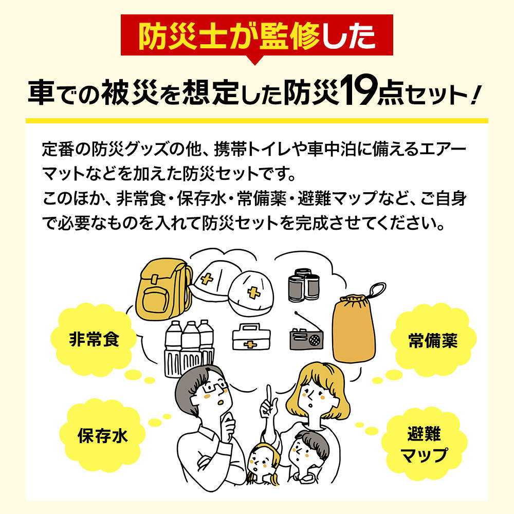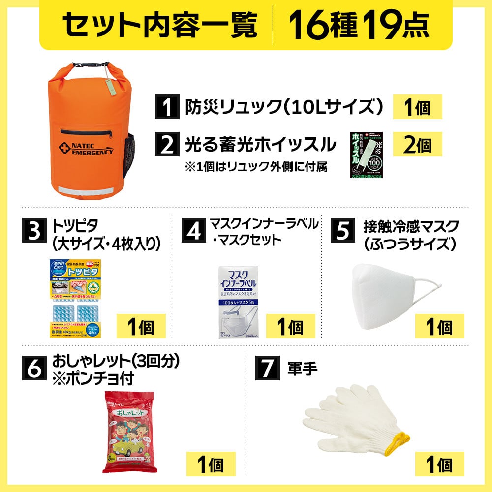 - 防災士監修 防災グッズ 車載用 DX セット 19点 防水 多機能リュック 10L 携帯トイレ 清潔用品 エアマット 保存水 クッキー マスク 非常用持ち出し袋 防災 防災リュック 防災用品 災害 非常用 避難 地震 災害 洪水 震災 ナテック 送料無料 愛知県 あま市