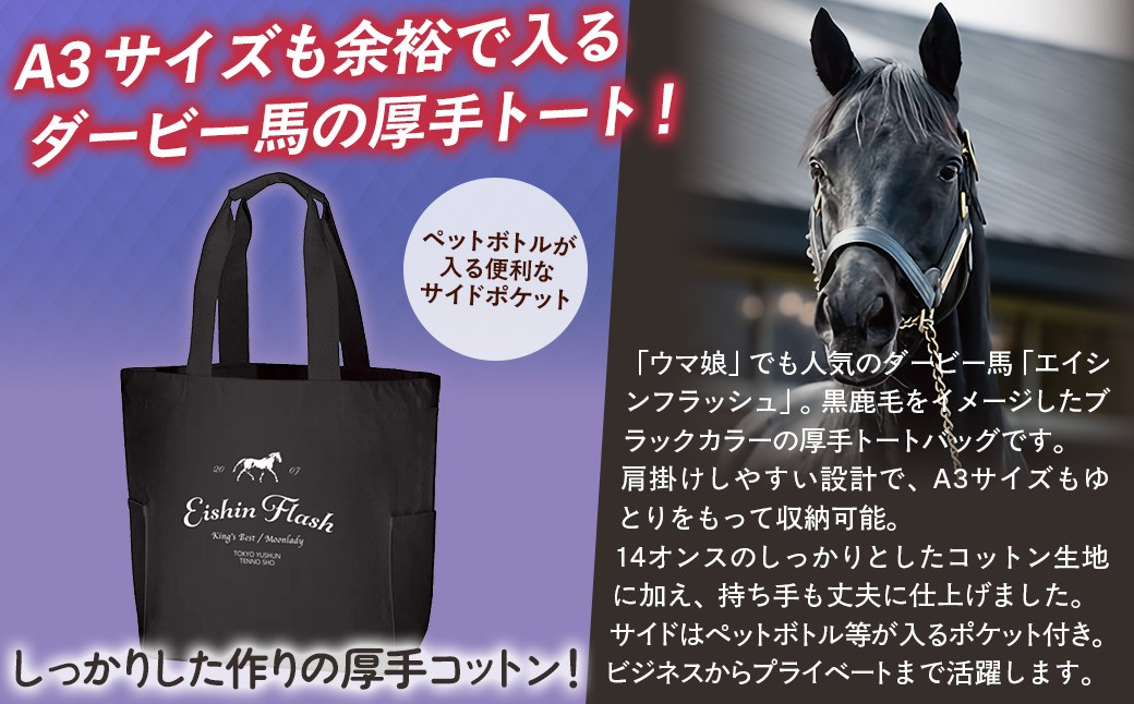 【エイシンフラッシュ】厚手トートバッグ 【ふるさと納税 人気 おすすめ ランキング 馬 競馬 競走馬 引退馬 エイシンフラッシュ 日高 北海道 平取町 送料無料】 BRTV030