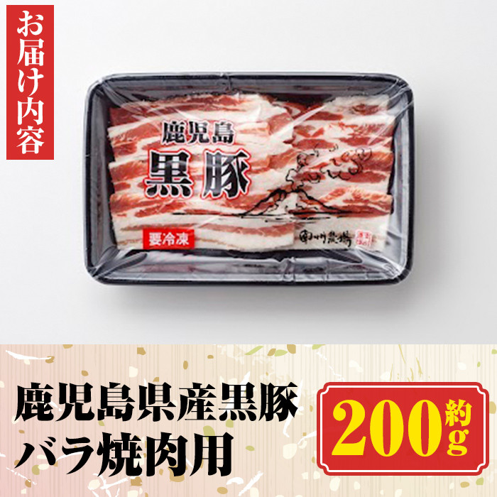- P03002 南州農場 黒豚バラ焼肉用(約200g) 鹿児島 国産 九州産 豚肉 黒豚 南州黒豚 豚バラ バラ肉 やきにく 焼肉 BBQ 冷凍 【南州農場(株)高山ミートセンター】