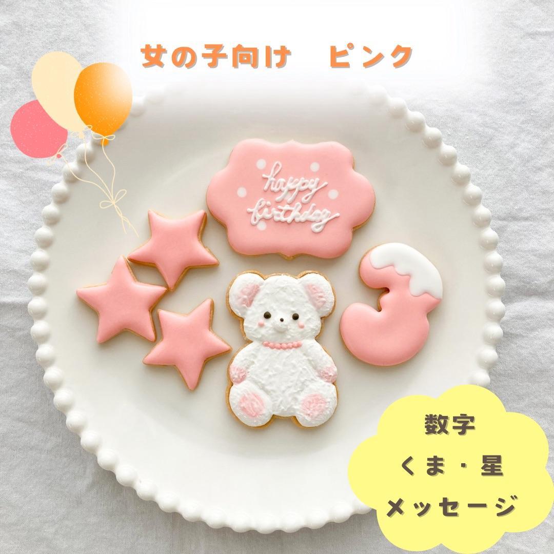 お誕生日クッキー〈くまさん〉 ピンク merry.cooking【数字:3】 272183_DD002VC03