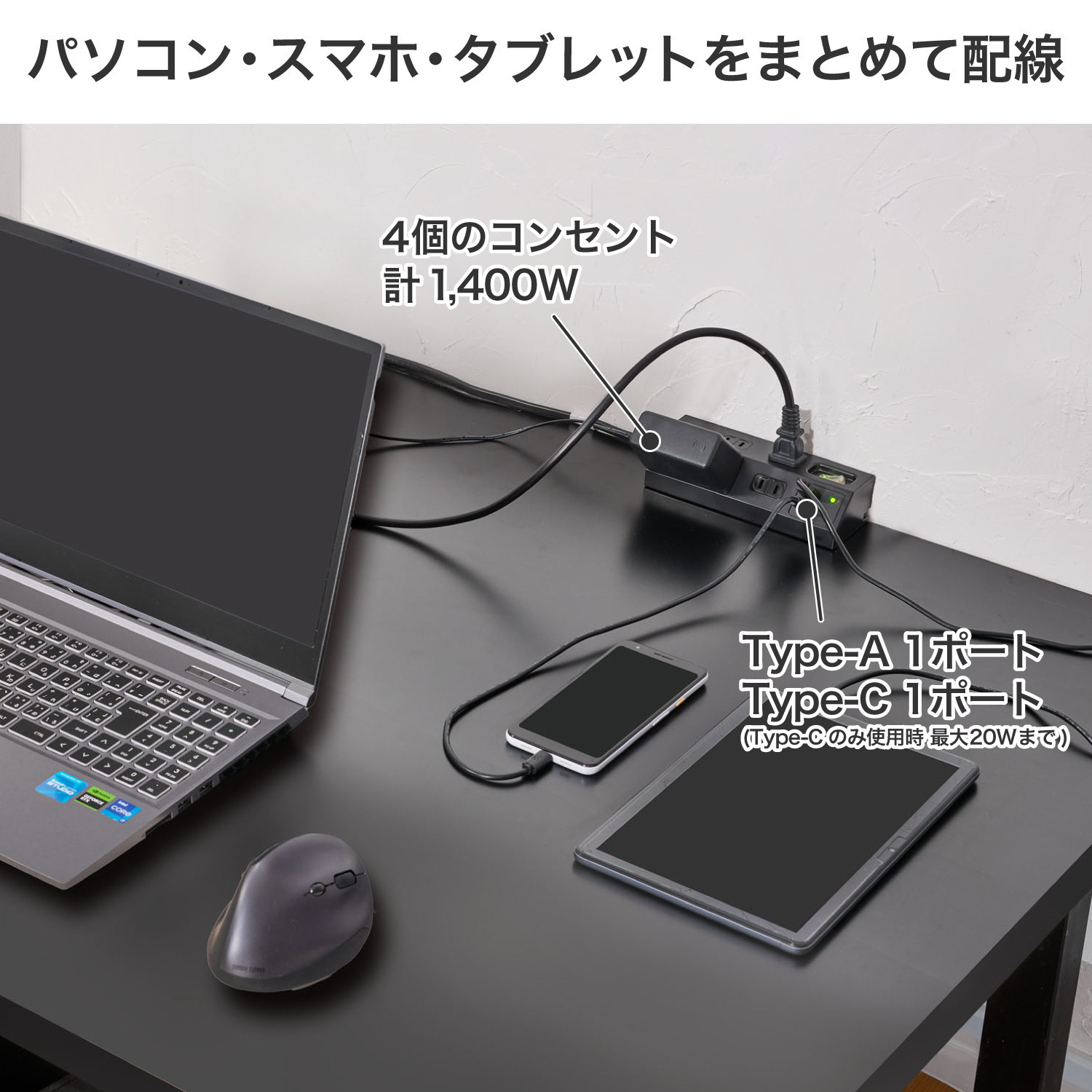 デスクUSBタップ PD20W WLS-DS4222SUC(BK) 272183_AZ196
