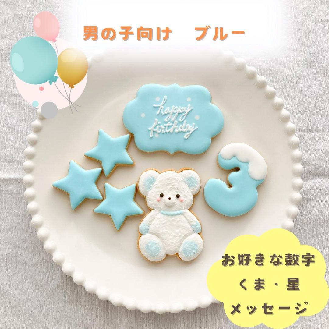 - お誕生日クッキー〈くまさん〉 ブルー merry.cooking【数字:3】 272183_DD003VC03