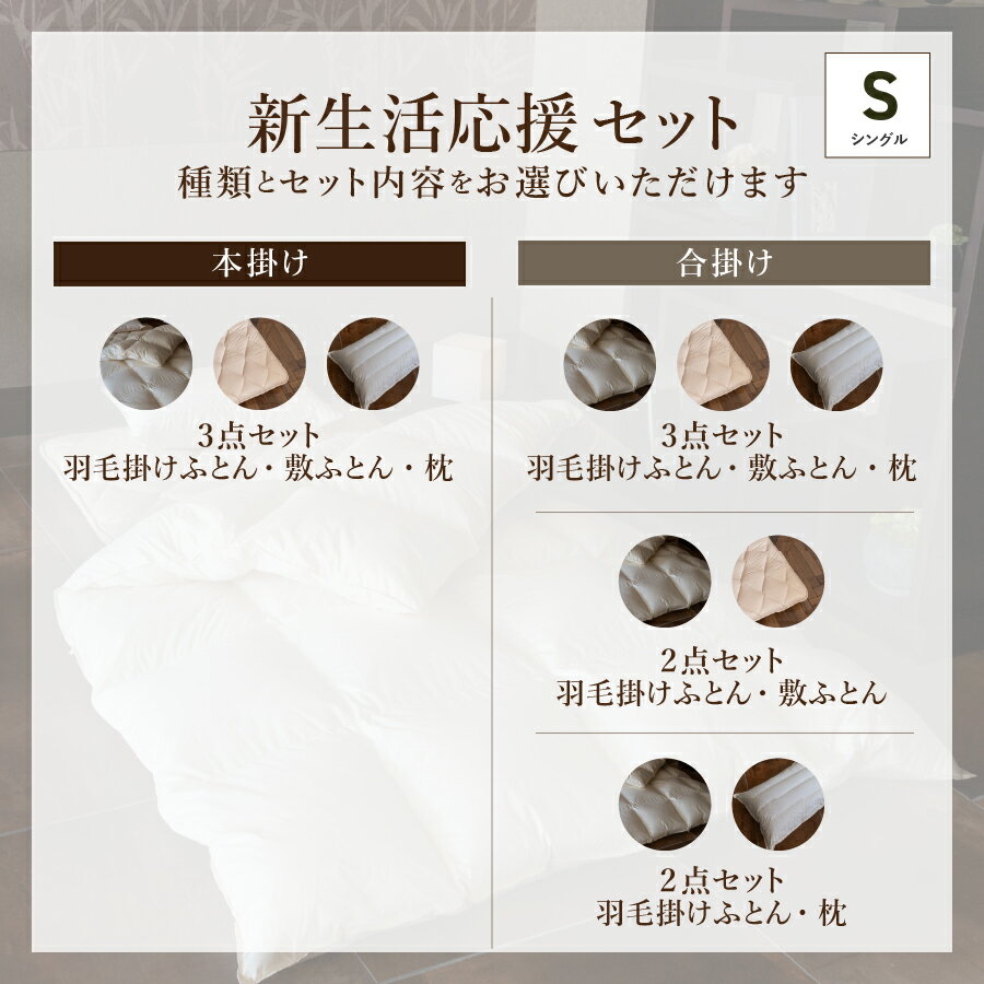 - 【ふるさと納税】 羽毛布団 シングル セット 選べる種類 本掛け 合掛け 選べるセット 掛け布団 敷布団 枕 3点セット 2点セット 日本製 布団セット 高級 来客用 寝具 ふとん まくら 布団 富士吉田市 ダウン 85% 防ダニ 抗菌 防臭 高品質 暖かい 【新生活応援】