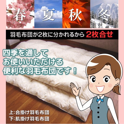 - 【セミダブル】洗濯機で洗える2枚合わせ羽毛ふとん【新津】| 合い掛け 肌掛け オールシーズン
