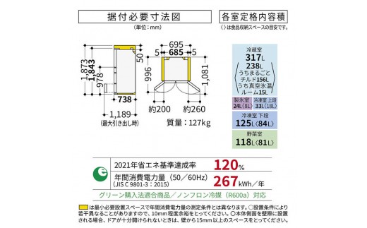 - 日立 冷蔵庫【標準設置費込み】 HZCタイプ 6ドア フレンチドア(観音開き) 617L『2026年度モデル』R-HZC62Y XH チャコールグレー【生活家電 日用品 人気 おすすめ 】