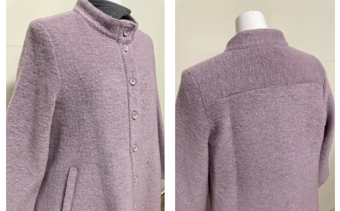 - ハーフコート ピンク 1枚 / ピンクコート スタンドカラーハーフコート レディースコート 総裏コート ゆったりコート 重ね着コート レディースアウター きれいめカジュアルコート 春秋コート ウール混コート 上品コート レディースファッション 衿ぐりゆったりコート 着やすいコート 広島県 No.1226