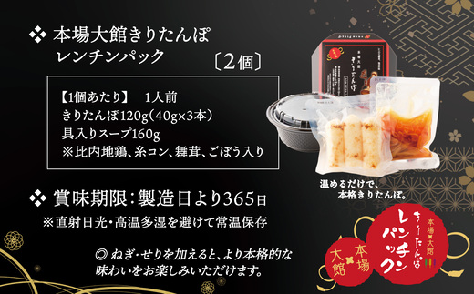 【本場大館きりたんぽ】レンチンパック×2個 55P1003 / 本場 きりたんぽ 鍋 あきたこまち 比内地鶏 比内鶏 郷土 料理 簡単 調理 ひないどり ブランド肉 ねぎ だし キリタンポ 出汁 取り寄せ 東北 秋田 大館 手軽 ご当地 グルメ スープ お土産 贈答 レトルト レンチン レンジアップ 常温保存