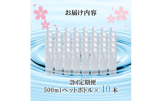 - 【桜屋】2回 定期便 シリカ天然水「サクラシリカ」500ml 40本 計80本 定期便 シリカ含有量99mg/L シリカ水 ラベルレス 水 ミネラルウォーター 飲料水 飲料 ペットボトル ナチュラルウォーター サルフェート 炭酸水素イオン ミネラル 国産 阿蘇 小国郷
