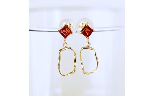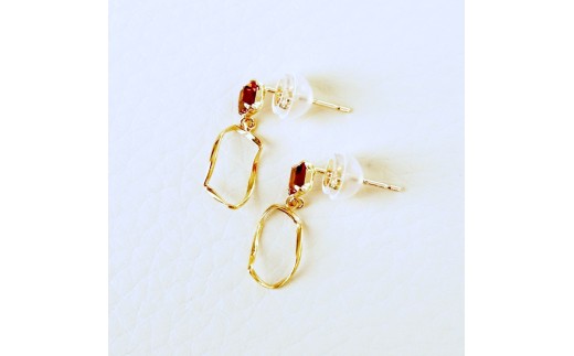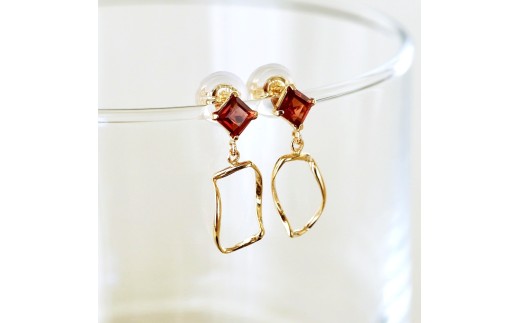 K10YG(10金) イエローゴールド ガーネット 揺れる オシャレ ピアス 保証書付 N034 242-066-b