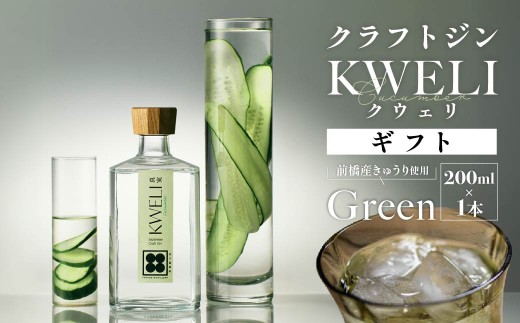 クラフトジン KWELI(クウェリ) ギフトセット Green 200ml | ジン クラフトジン gin 蒸留酒 スピリッツ お酒 酒 おしゃれ こだわり 少量生産 カクテル ジントニック きゅうり めずらしい クラフト 双子蒸留所 群馬県 前橋市