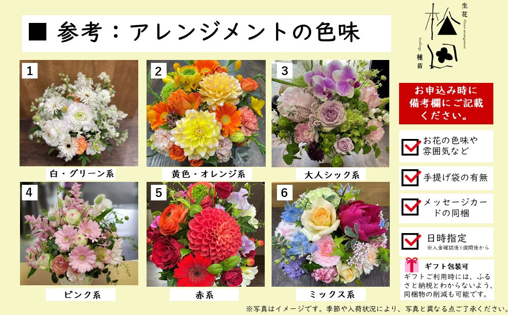 - 【定期便6ヶ月】季節のフラワーアレンジメント Mサイズ 合計6回【松田生花店】