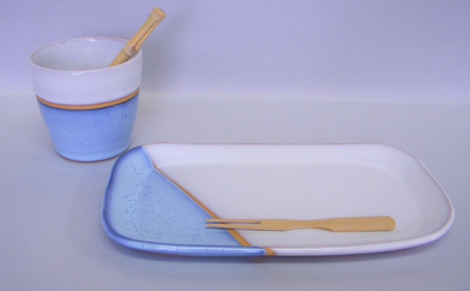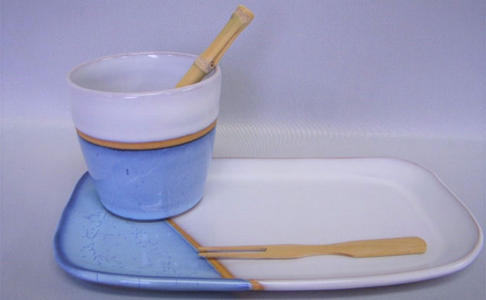 萩焼 カップ&プレート皿セット(藍)