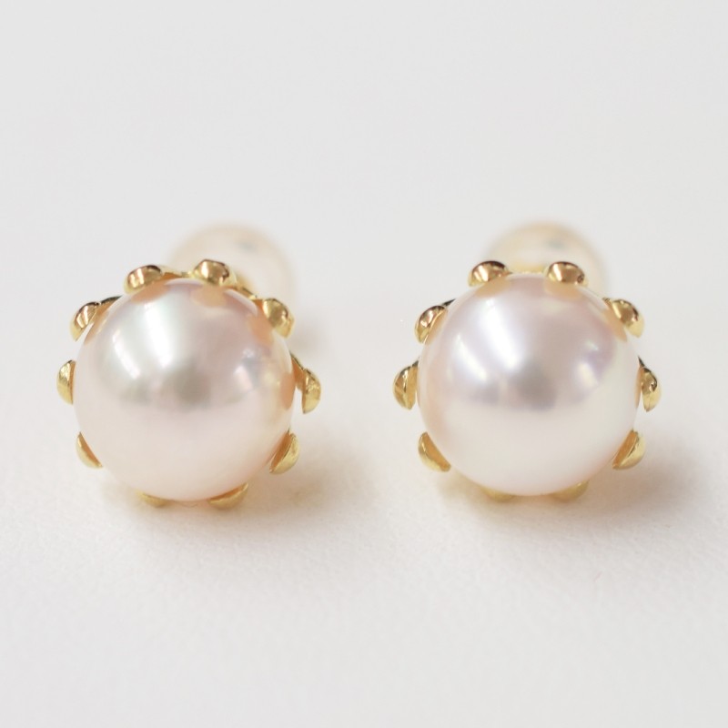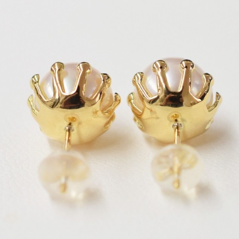 S101-429-sku_あこや真珠 天草 熊本 ピアス ミルククラウン 8mm - 8.5mm 皿 花型 花びら ホワイトピンク