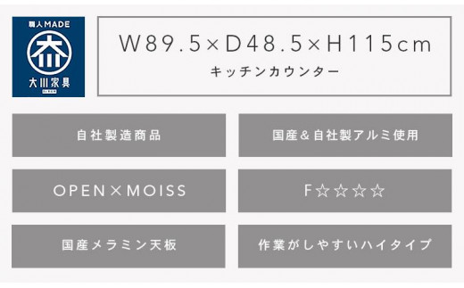 - 【開梱設置】 スパーク キッチンカウンター 幅90cm キッチン収納 レンジ台 完成品 大型レンジ対応 完成品幅 スライド ブラウン ナチュラル 大川家具