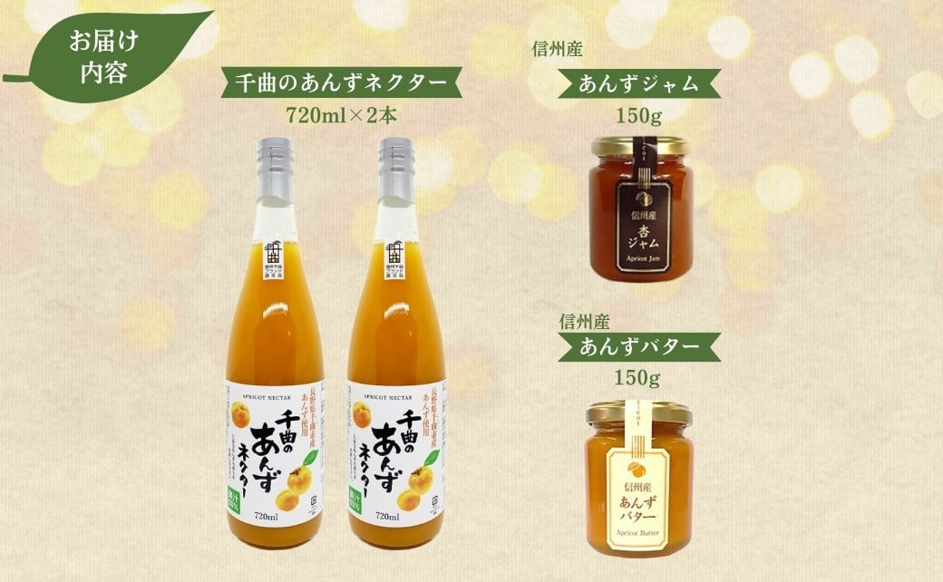 - あんず3種セット(あんずジャム・あんずバター・あんずネクター2本)| 杏子 アンズ アプリコット ジュース 千曲市産 長野県 信州