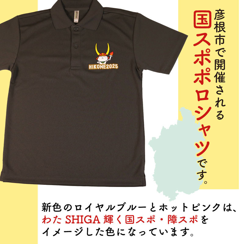 国スポ 2025 ポロシャツ ダークグレー SS S M L LL 3L 4L 5L 半袖 Tシャツ ひこにゃん ロゴ入り 滋賀 彦根