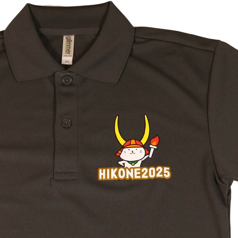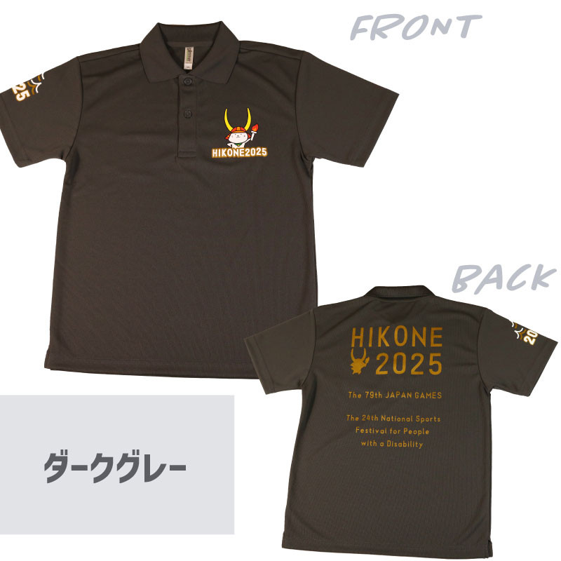 - 国スポ 2025 ポロシャツ ダークグレー SS S M L LL 3L 4L 5L 半袖 Tシャツ ひこにゃん ロゴ入り 滋賀 彦根