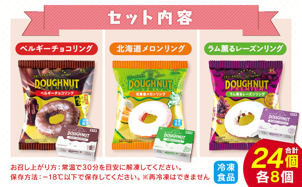 【北川製菓】ご褒美プレミアムドーナツセット(24個・3箱/ベルギーチョコリング・北海道メロンリング・ラム薫るレーズンリング)(菓子 焼菓子 チョコレート スイーツ デザート 人気 詰め合わせ 詰合せ おかし 贅沢 ご褒美 上伊那 宮田村 長野 信州 高級 特産品 ギフト お祝い 贈答 プレゼント)