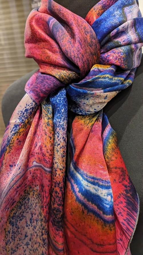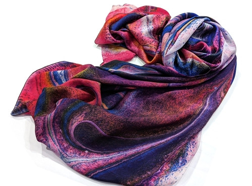 墨流し染 シルク ロングストール (マーブル模様) / 染美堂 一点物 絹 現代風 アート サテン織 贈り物 上品 奈良県 葛城市【snbd013】