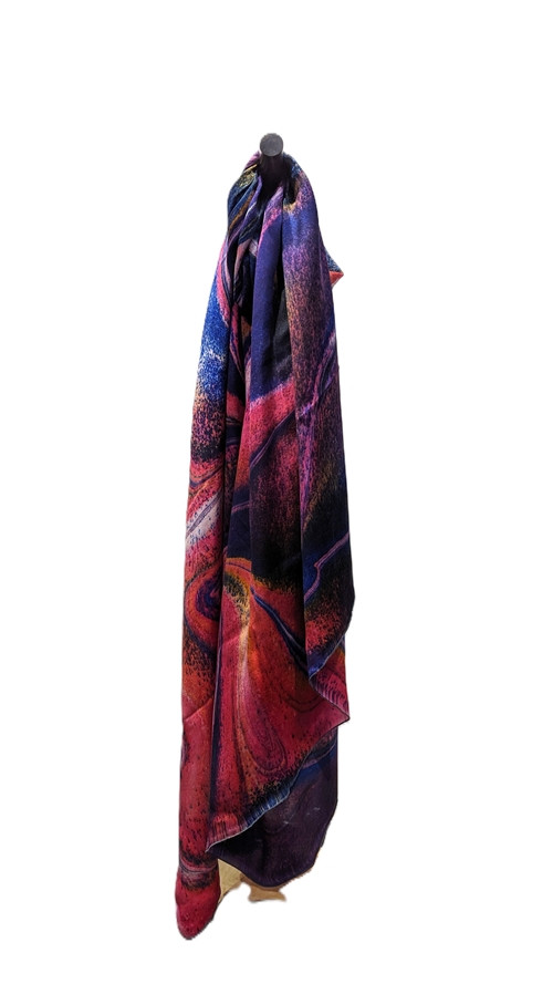 - 墨流し染 シルク ロングストール (マーブル模様) / 染美堂 一点物 絹 現代風 アート サテン織 贈り物 上品 奈良県 葛城市【snbd013】