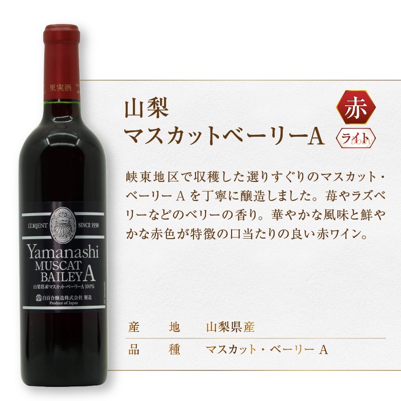 【選べる組合せ】ロリアン 2本セット【山梨マスカットベーリーA / 勝沼甲州 / 山梨甲州 】(MG)【ワイン 白百合醸造 赤ワイン 白ワイン 甲州市 山梨県】