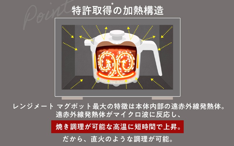 - 【先行予約】【ふるさと納税限定製品】レンジメート マグポット プラス| 電子レンジ専用調理器具 レシピ付き 電子レンジ 調理器 レンジ 焼き 煮る 蒸し 茹でる 炊く 炒める 沸かす 丸型 レンジメイト MUK グリル フッ素樹脂コーティング加工 RANGEMATE MUGPOT 電子レンジ調理器 時短 グリル調理 グリルプレート レンジ調理器具 レンジメート レンジメイト キッチン