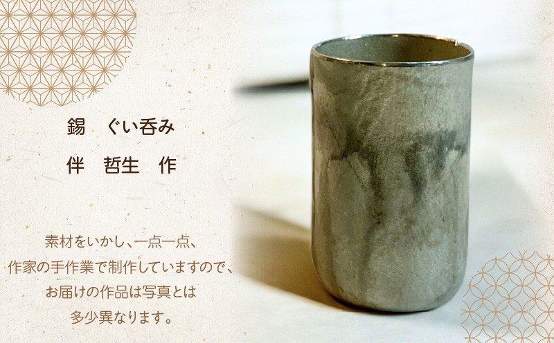 【選べる個数】伴 哲夫作 錫 ぐい吞み1個 2個 桐箱(作家名入り)付き