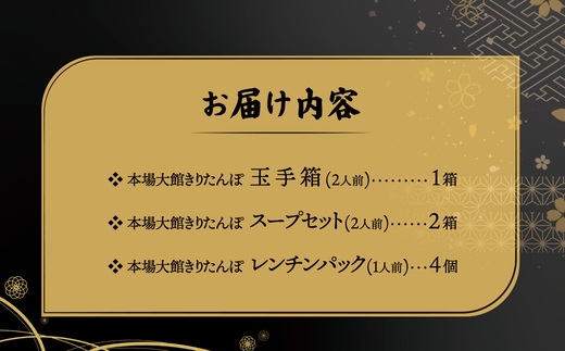 【本場大館きりたんぽ】玉手箱1+スープセット2+レンチンパック4 250P1004 / 本場 きりたんぽ 鍋 あきたこまち 比内地鶏 比内鶏 郷土 料理 簡単 調理 ひないどり ブランド肉 野菜 ねぎ 芹 セリ まいたけ ごぼう だし キリタンポ なべ 食材 出汁 取り寄せ 東北 秋田 大館 手軽 ご当地 グルメ オールワンパッケージ スープ お土産 レンチン レンジアップ レトルト常温保存