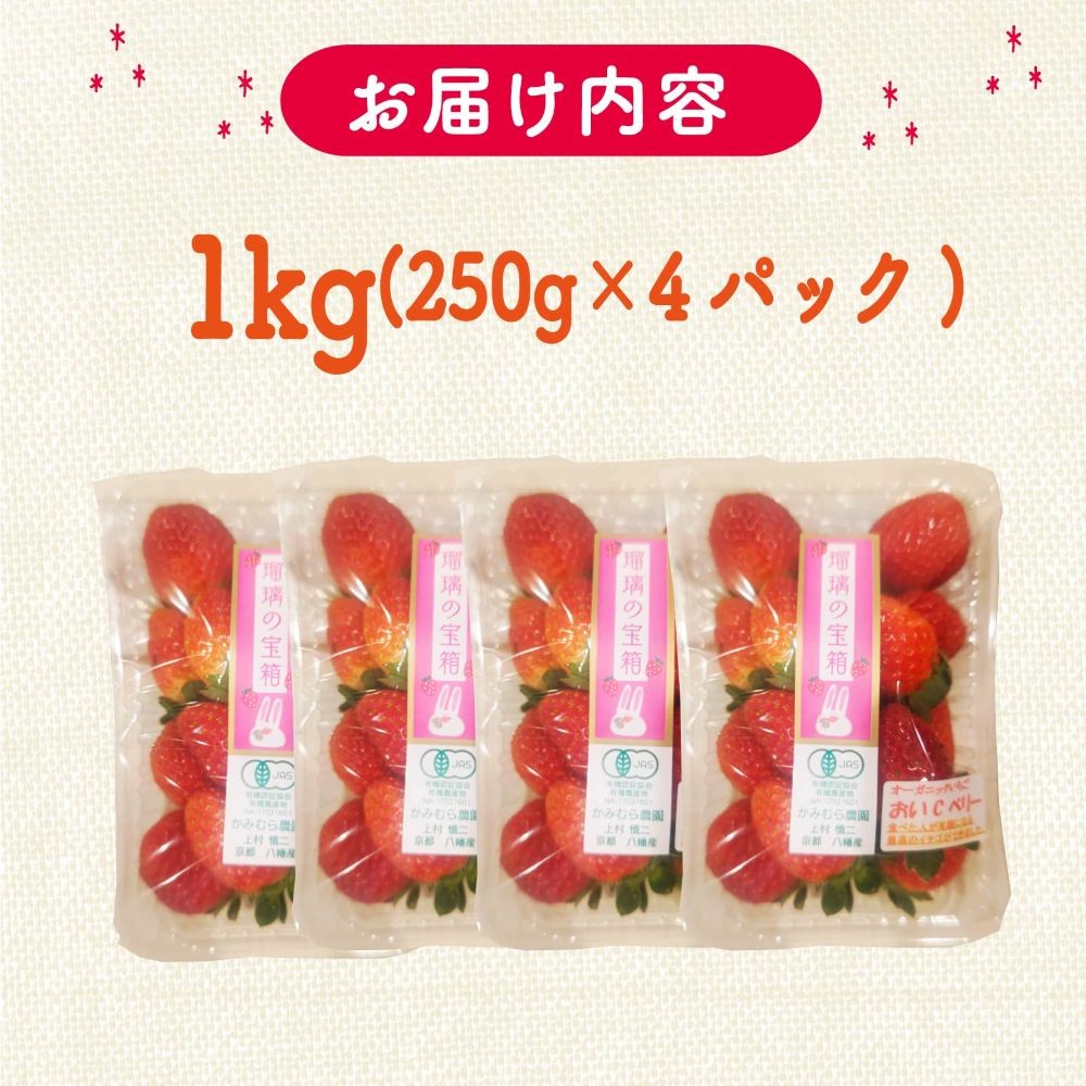 【2026年3月~5月発送】 いちご 1kg 1000g 瑠璃の宝箱 250g 4パック 有機JAS 植物系有機肥料のみ イチゴ 苺 オーガニックイチゴ ストロベリー ベリー フルーツ 果物 甘い 国産 ブランド 産地 直送 フレッシュ 人気 おすすめ ふるさと納税 京都 八幡 八幡市 かみむら農園