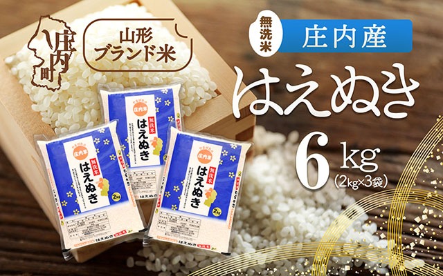 庄内町産 はえぬき 無洗米 6kg 2kg×3袋 令和7年産 2025年産 ブランド米 米 国産 単一原料米 山形 庄内平野 コシヒカリの原点、亀の尾発祥の地 庄内