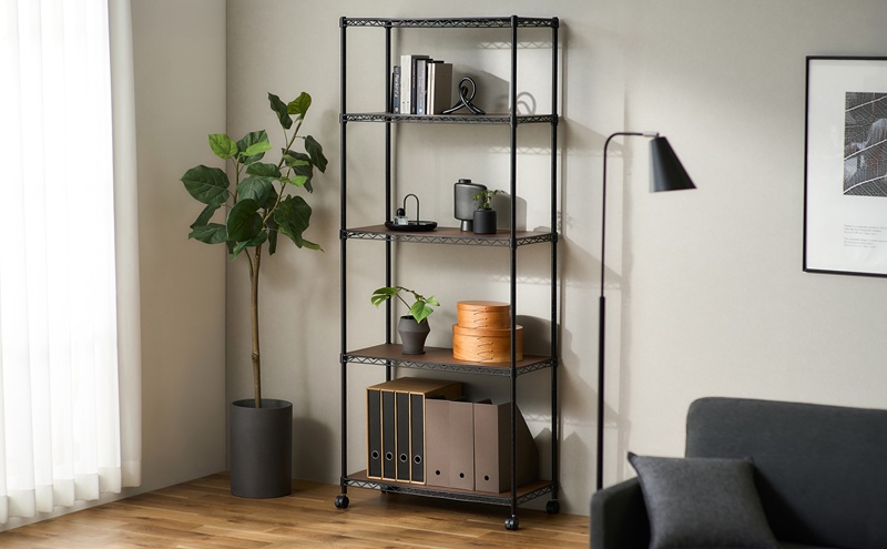 - カラーメタルラック ウッドボード付き CMM-75185B ブラック スチールラック メタルラック カラー ウッドボード付き 収納 キッチン リビング おしゃれ アイリスオーヤマ