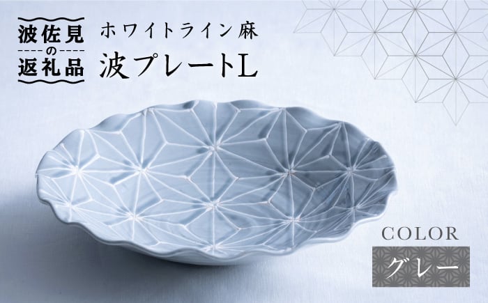 【波佐見焼】ホワイトライン麻 波 プレート L グレー 食器 皿 【翔芳窯】 [FE11]