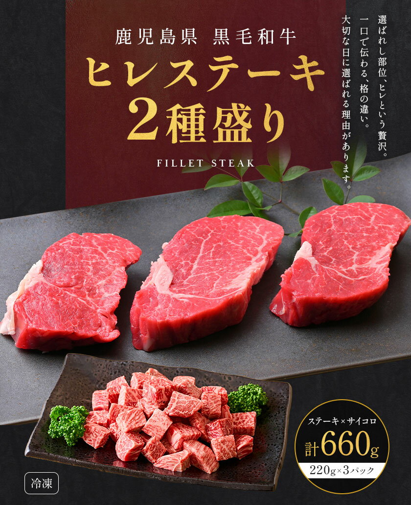 - 【ふるさと納税】肉 牛肉 鹿児島県産 黒毛和牛 ヒレステーキ 2種盛り ステーキ サイコロ 660g 《90日以内に出荷予定(土日祝除く)》 株式会社カミチク 鹿児島県 さつま町
