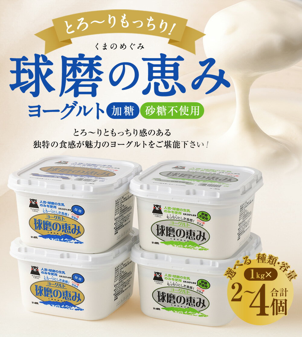 - 【ふるさと納税】【選べる 種類・容量】 とろ〜り食感!!球磨の恵みヨーグルト 砂糖不使用タイプ 加糖タイプ 2種セット 1kg×2パック 1kg×3パック 1kg×4パック 計 2kg 3kg 4kg 乳製品 ヨーグルト 熊本県 あさぎり町 送料無料