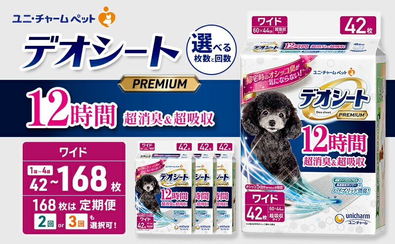【ふるさと納税】デオシート PREMIUM 12時間 超消臭&超吸収 ワイド 選べる枚数・回数 42枚/84枚/168枚 1回/2回/3回定期便 ペットシーツ ペットシート トイレ 犬 犬用トイレ ペット 清潔 ユニ・チャーム 愛犬用 ペット用品