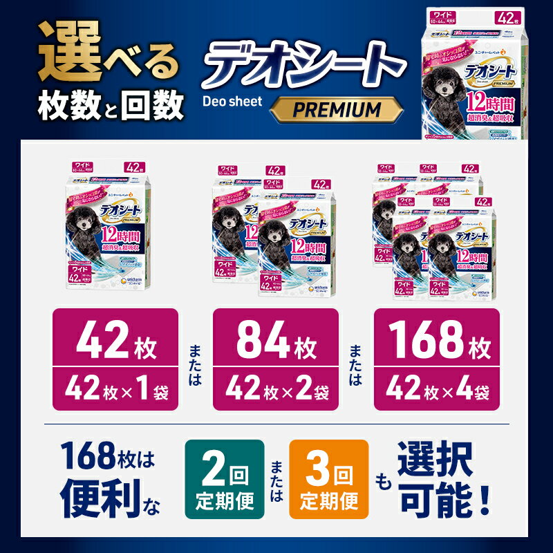 - 【ふるさと納税】デオシート PREMIUM 12時間 超消臭&超吸収 ワイド 選べる枚数・回数 42枚/84枚/168枚 1回/2回/3回定期便 ペットシーツ ペットシート トイレ 犬 犬用トイレ ペット 清潔 ユニ・チャーム 愛犬用 ペット用品