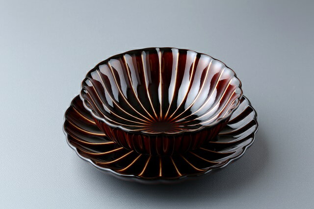 【ふるさと納税】【有田焼】黒泡化粧片菊割皿19cmプレート2点セット / 有田焼 焼物 やきもの 焼き物 中皿 セット 丸皿 ペア / 佐賀県 / 株式会社深海三龍堂 [41APAD003]