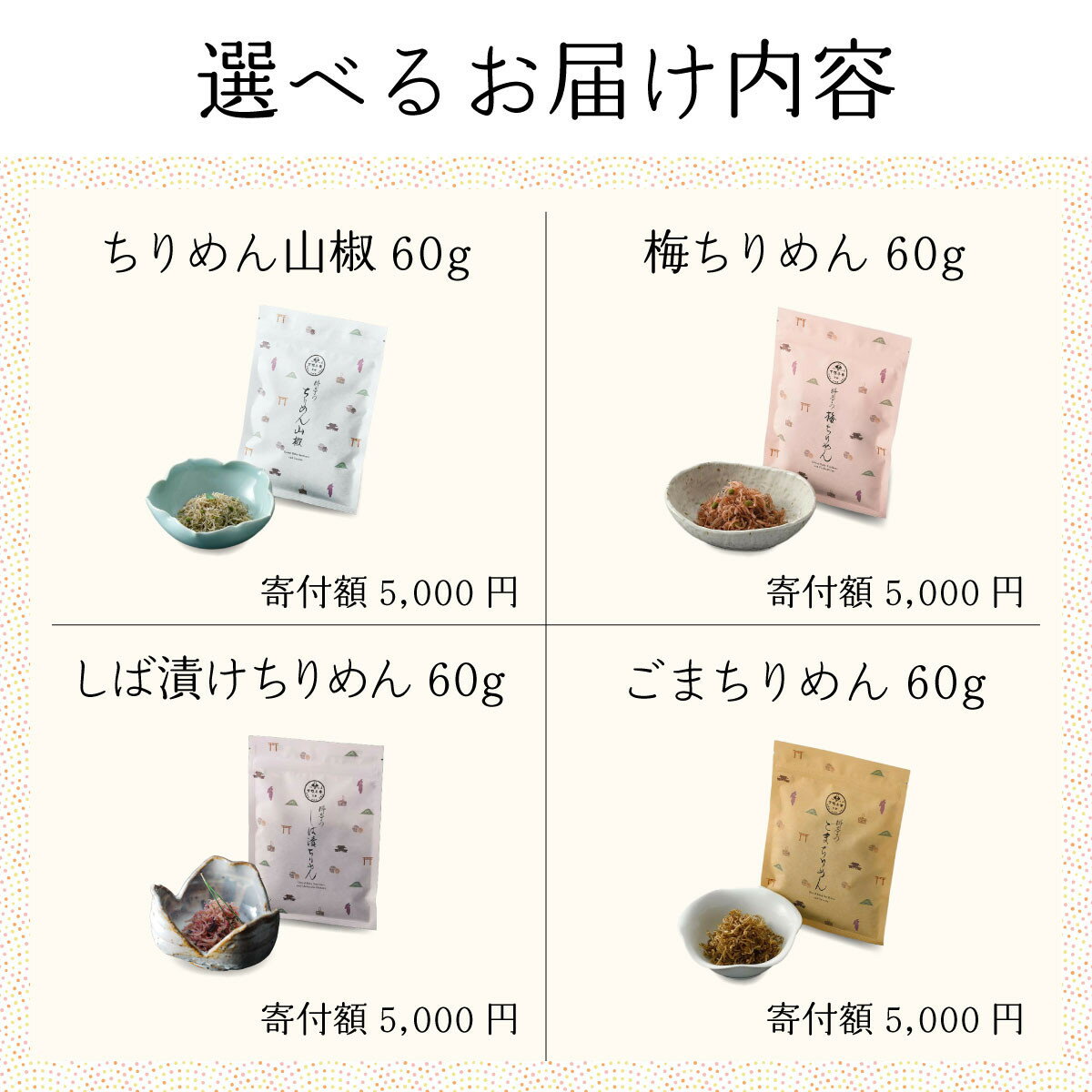 - 【ふるさと納税】【下鴨茶寮】料亭のちりめん山椒 デザイン袋 選べる4種|京都 老舗料亭 名店 人気セット [ 料亭仕込みのちりめん山椒 プレーン 梅 しば漬け ごま ギフトにもおすすめ 贅沢 グルメ 美食 プレゼント 贈答 お取り寄せ 通販 送料無料 ふるさと納税 ]