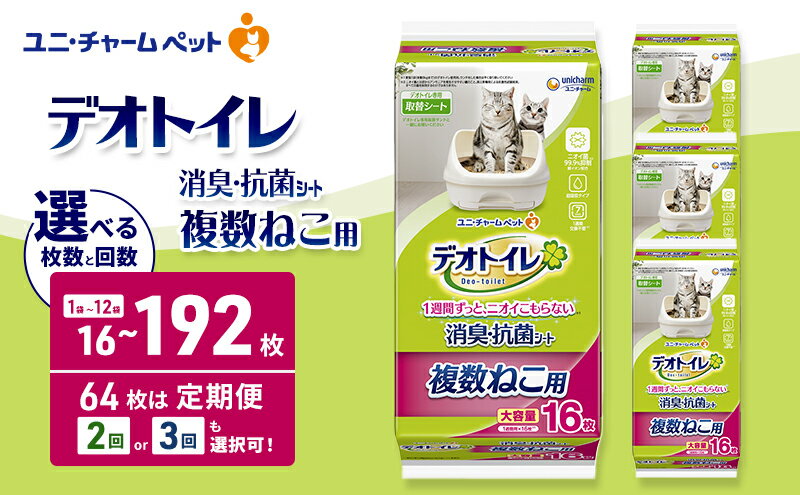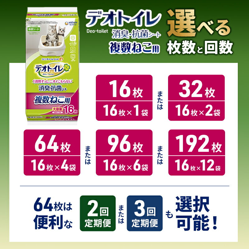 【ふるさと納税】デオトイレ 複数ねこ用 消臭・抗菌 シート 選べる枚数・回数 16枚/32枚/64枚/96枚/192枚 1回/2回/3回定期便 ペットシーツ ペットシート トイレ 猫 猫用トイレ ペット 清潔 ユニ・チャーム 愛猫用 ペット用品
