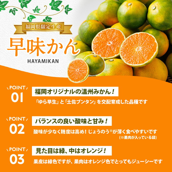 【ふるさと納税】<先行予約受付中!2026年9月中旬以降順次発送予定>≪容量選べる≫福岡県ブランドみかん 早味かん(計約3kg~約5kg) みかん ミカン オレンジ 蜜柑 はやみかん 温州 極早生 ブランド 柑橘 果物 くだもの フルーツ 生 国産 冷蔵【農産物直売所ほたるの里】