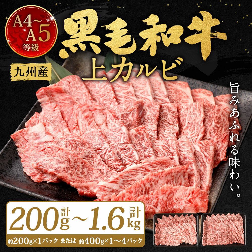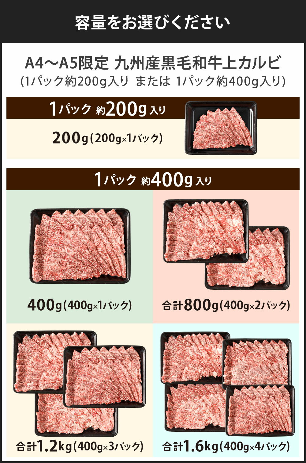【ふるさと納税】A4-A5限定 九州産 黒毛和牛 上カルビ 選べる 200g(1パック) / 400g(1パック) / 計800g(400g×2パック) / 計1.2kg(400g×3パック) / 計1.6kg(400g×4パック) 牛肉 お肉 国産牛 和牛 牛カルビ 焼肉 焼き肉 BBQ バーベキュー 冷凍 国産 福岡県北九州市