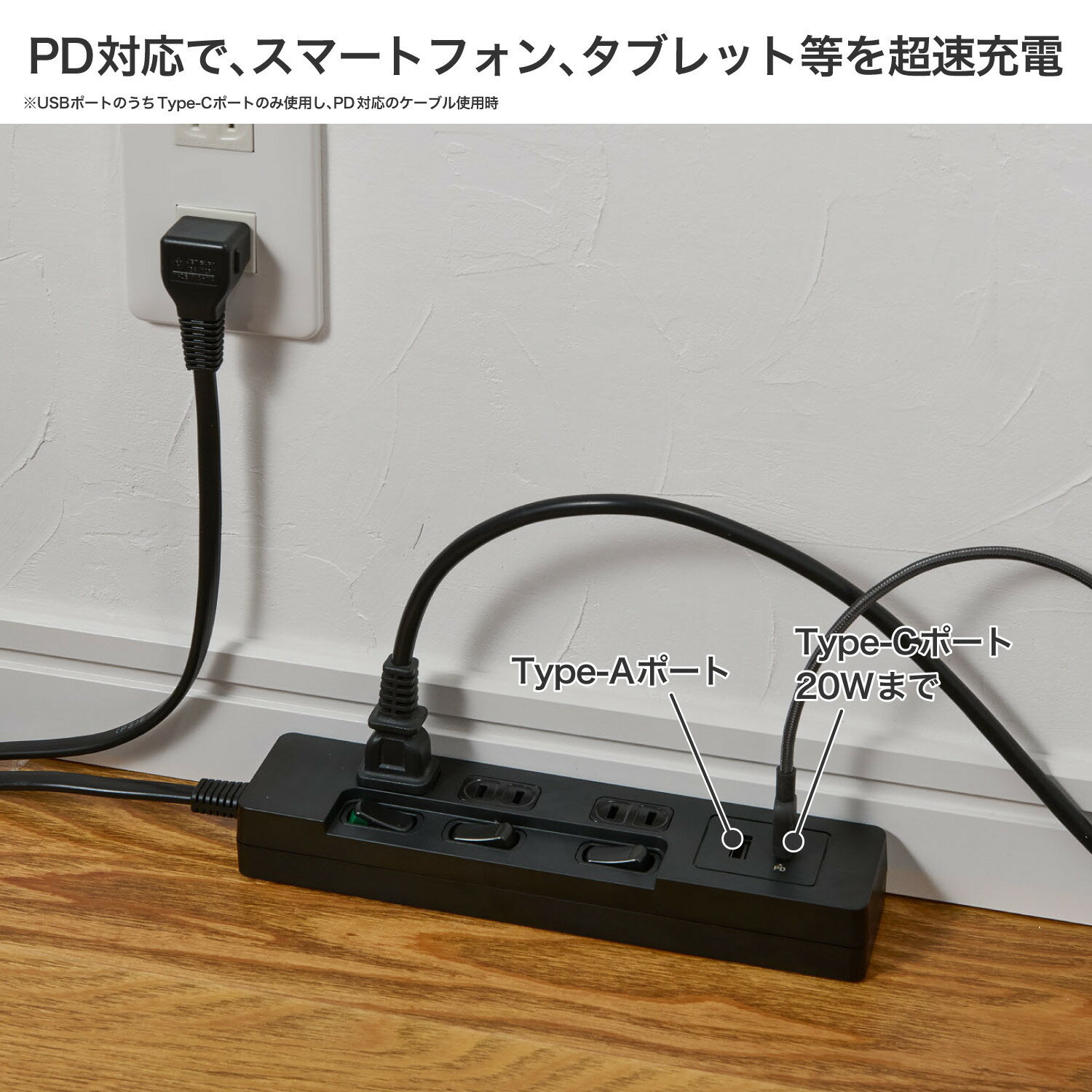 - 【ふるさと納税】ランプレスSW付USBタップ PD20W WLK-E3222UC(BK) | USB タップ 電源タップ コンセント スイッチ付き USB充電 ポータブル 電源管理 デスクワーク オフィス 家庭用 電子機器