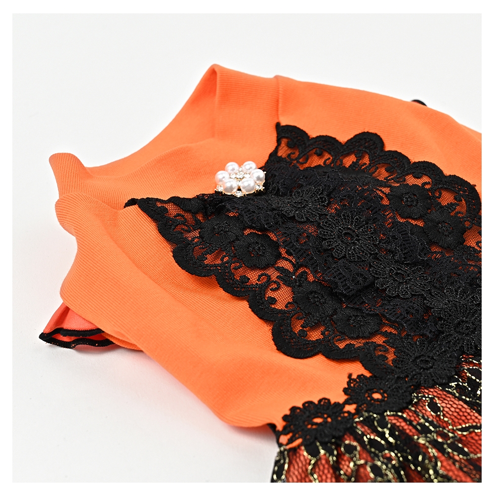 - ブラックレースパーティドレス オレンジ 犬服 ドッグウェア 小型犬【ココアトワ(cocoAtoi)】 [№5223-0223]