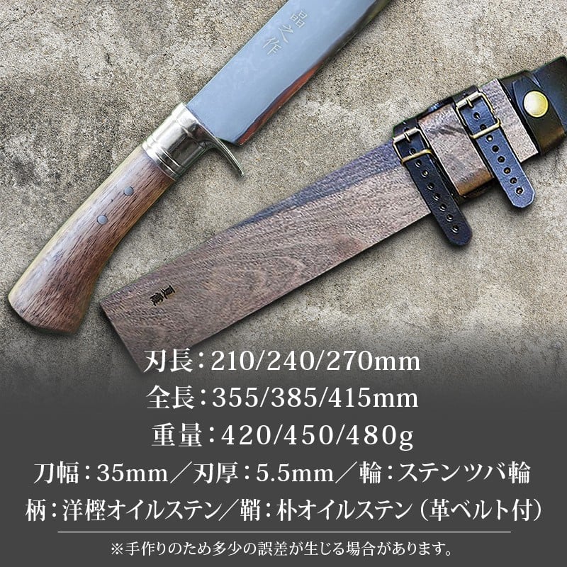 - 土佐鍛剣鉈 夏霞 全3種 ダマスカス15層青2鋼 ステンツバ輪 樫オイルステン柄 | ナイフ キャンプ アウトドア 打刃物 土佐 鉈 なた 職人 山林 狩猟 刃物 薪割り ハンドメイド 釣り 伝統 工芸 高知県 南国市