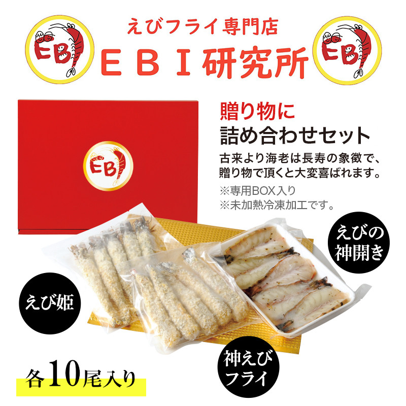 【セット】「EBI研究所」えび詰合せセットL(3種×各10尾)(有頭えびフライ・無頭えびフライ・海老の香味焼き)