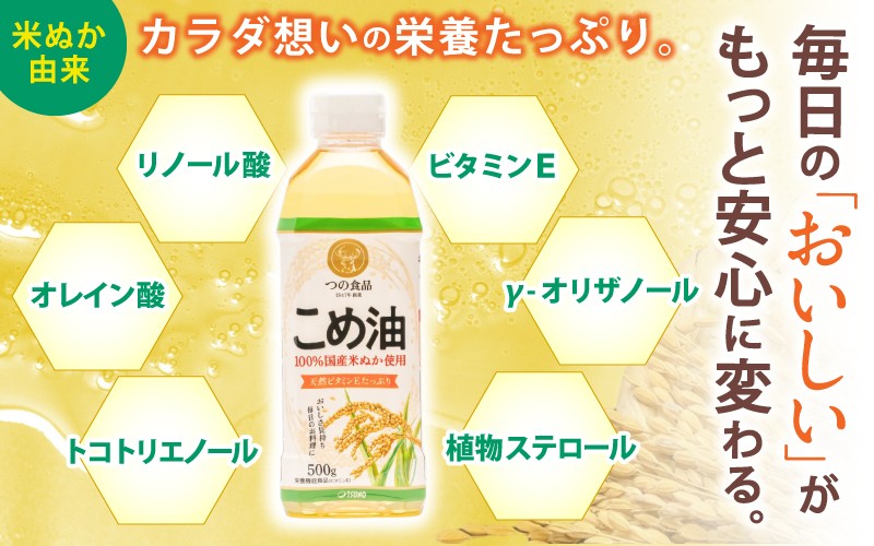 - 国産 こめ油 500g ×6本 / 油 こめ油 コメ油 食用油 植物油 米油 揚げ油 こめあぶら 国産 13000円 料理 揚げ物 炒め物 ドレッシング 調味料 手作り 贈答 贈り物 ギフト お中元 お歳暮 プレゼント 健康志向 栄養 由良町 和歌山県【ard038A】