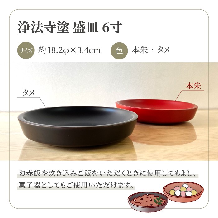 浄法寺塗 盛皿 6寸 【うるみ工芸】 漆器 漆 うるし 工芸品 工芸 伝統工芸 食器 和食器 菓子器 木製 皿 お皿 さら 盛り皿 選べる 夫婦 本朱 赤 タメ 黒 国産 日本製 日用品 プレゼント プチギフト 贈り物 お祝い 人気 自宅用 10代 20代 30代 40代 50代 60代 70代 80代 おすすめ