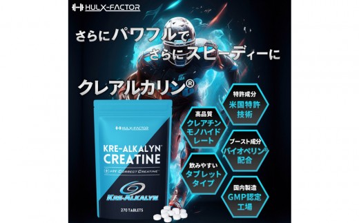 - ハルクファクター クレアルカリン 270粒 クレアチン モノハイドレート アメリカ産 高純度 錠剤 国内製造 特許 バイオペリン配合